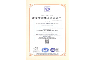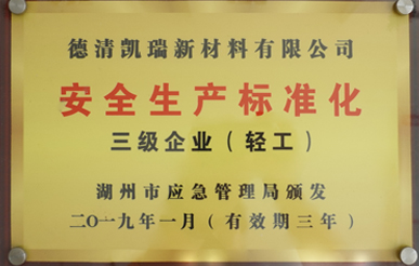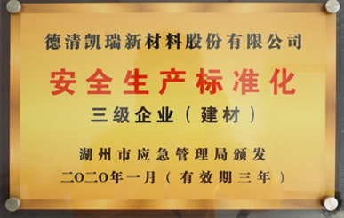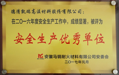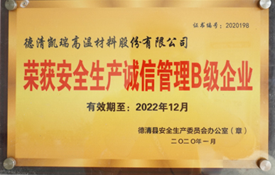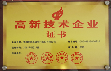 公司秉着“和谐凯瑞、真诚服务”的理论稳步发展,连续几年被工商部门评为“重合同、守信用”单位,2000年被县政府列为“重点民营企业”;2001年公司通过了国际质量体系认证,并于2004年顺利实现ISO9001:2000换版认证;获得德清县钟管镇工业创强一等奖;2002年初被县政府授予“德清县科技型企业”;2003年浙江省乡镇企业管理部门命名为“质量诚信明星企业”;2005被湖州市科学技术局授予“湖州市高新技术企业”;2007年被命名为浙江省科技型中小企业。2013年获得了安全生产标准化证书,2014年被德清县科技局评为德清县专利示范企业,2015年被湖州市专利示范企业,同年通过了"国家高新技术企业"认定,并于2015年11月25日“新三板”成功挂牌上市,更名为"德清凯瑞高温材料股份有限公司”,证券名称:凯瑞股份,证券代码:834348。2019年度通过质量管理体系、环境卫生管理体系和职业健康体系三体系认证,12月通过安全生产标准化三级企业认证,2020年1月荣获安全生产诚信管理B级企业,6 月由北京万坤认证服务有限公司审核通过了知识产权管理体系认证。
